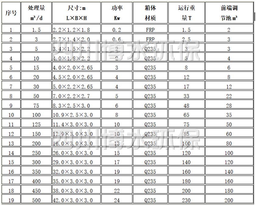 2 MBR工艺设备选型表1.5-500m³/d